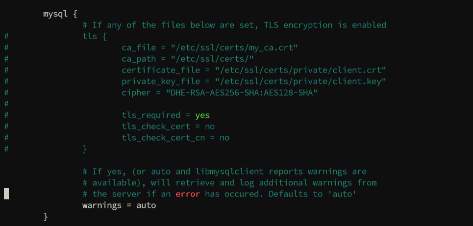 - Sebab koneksi database bersifat local configurasi tls dapat di comment