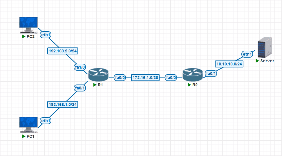 Pada Halaman sebelumnya Cisco : Standard Access Control List kita telah menkonfigurasi Acess Control list standard sekarang kita akan konfigurasi Extended Access control list. Berbeda dengan standard ACL ,extended ACL berkemampuan untuk menfilter paket tidak hanya dengan source ip address melainkan dengan sourceip, destination ip, Port, Type connection (tcp/udp). Sehingga memungkinkan filtering paket lebih tepat sasaran.