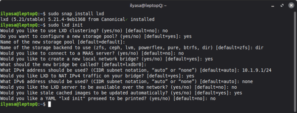 Would you like a YAML "lxd init" preseed to be printed? (yes/no) [default=no]: no